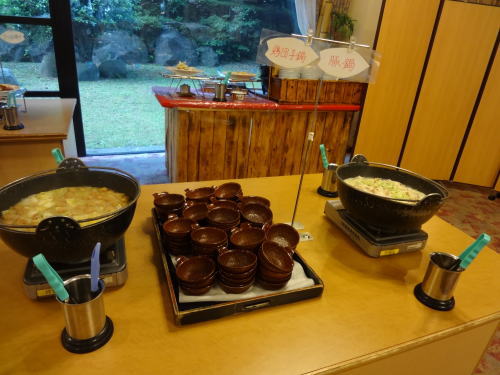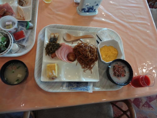 | 朝食会場 | 朝食 写真は焼きそば、おかゆに梅シラス、ふんわり玉子、ハムなど | |
