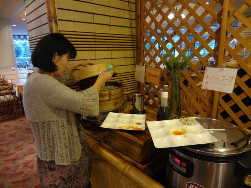 | 焼売を取っています | 夕食会場 オープンして間もなくの時間帯 | |