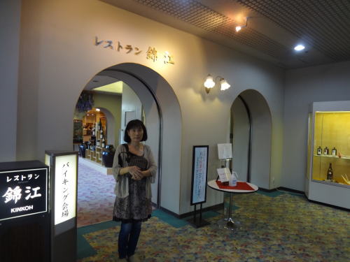 | バイキングレストラン入口にて | 夕食を済ませ部屋へ帰る途中のラウンジにて | |
