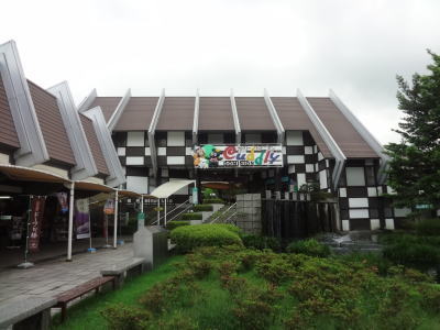 | ワンワン広場、。ゴールデンなどの犬がたくさんいる | 長陽村総合福祉温泉センター「ウィナス」。鳥の翼を広げたような大きなかわった建物で、南阿蘇の外輪山を一望できる露天風呂が有名。入浴料は大人400円。 | |