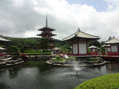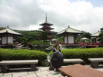 | ”十二支苑”は干支を祀った日本庭園.ニシキゴイが泳ぐ池が三重の塔の周りを囲んだ憩いの場 | ||