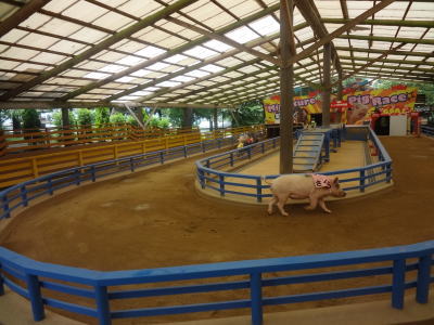 | ミニ豚レース500円でレースに参加できる。当たるとぬいぐるみがもらえる | みやざわ劇場入り口 | |