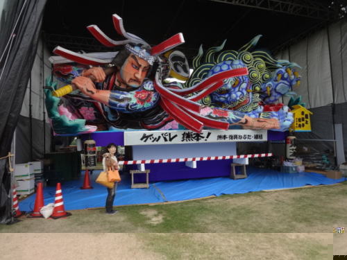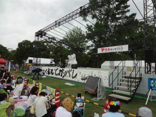 | 熊本城、実物で見ると予想以上に被害が大きかった。 | 熊本城二の丸広場で熊本キャラフエスが行われていた。全国のキャラクターが60体ほど参加 | |