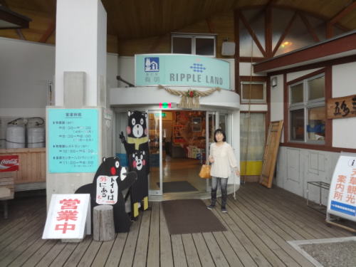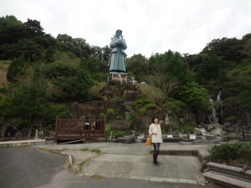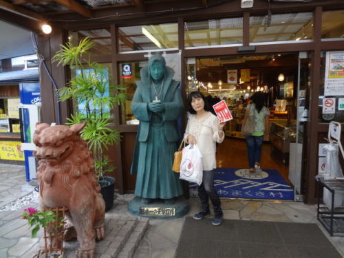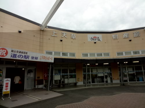 | 上天草藍のあまくさ村。天草四郎銅像の前で | あまくさ村お土産売店前で、職場の2人のお土産と休み時間のおやつを買いました。 | |