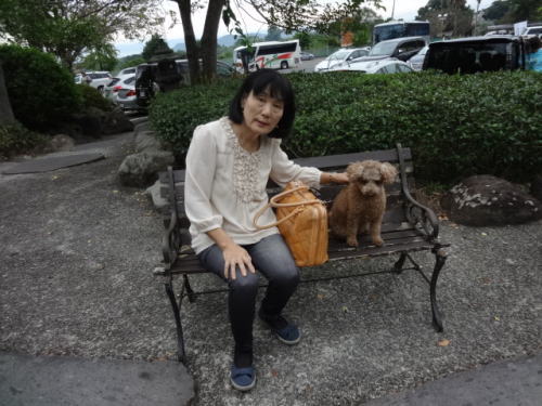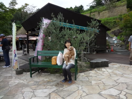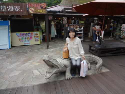 | 広場のワニに腰かけて記念撮影 | 史郎広場でトイと一緒に | |