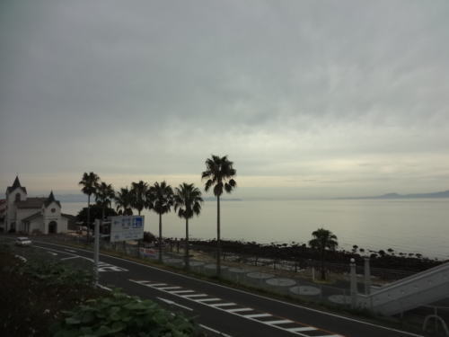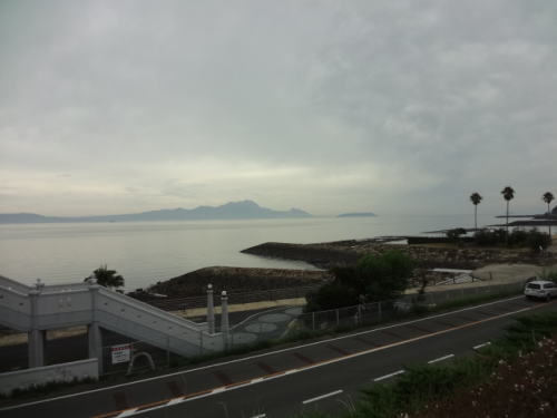 | 道の駅有明で有明海を撮影、遠くに見えるのが島原 | 道の駅有明で有明海を撮影、中央に見えるのが普賢岳 | |