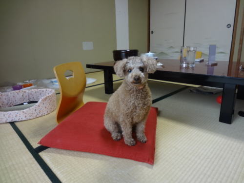 部屋は和室10畳、畳は新調されているのか香りがしていた。トイも満足そうである | |