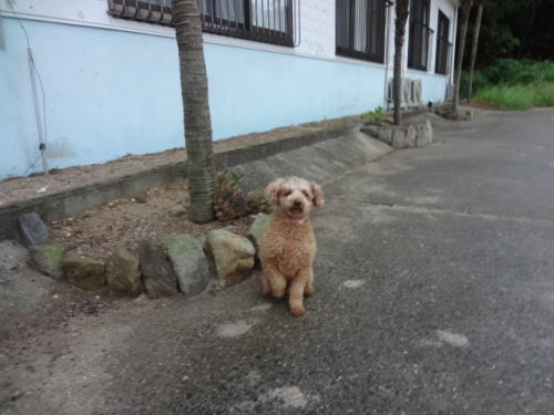 | ホテル前の海岸。犬の散歩にはうってつけの場所。 | トイも撮影には素直に応じます | |