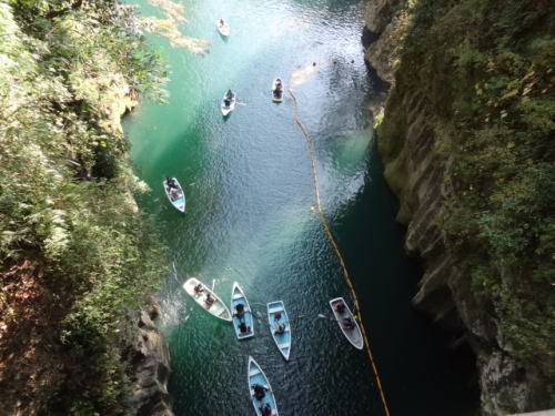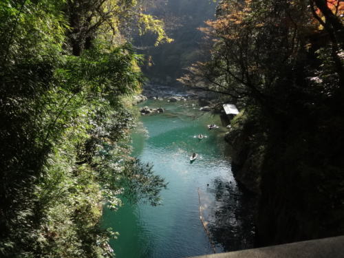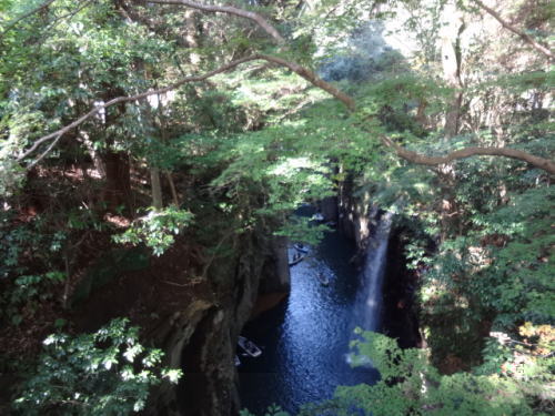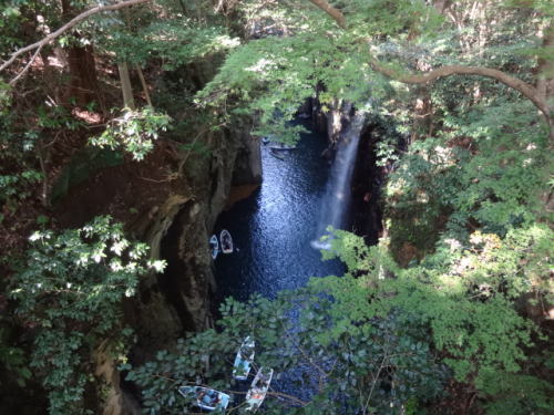 | 渓谷の川では多くのボートが浮かんでいました。ボートの料金は30分で2000円 | 天岩戸(あまのいわと)神社入り口 | |||||