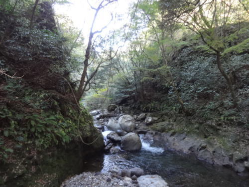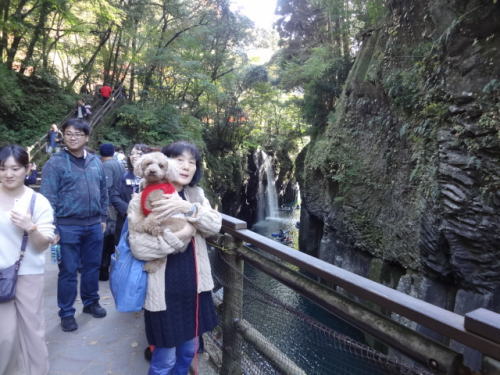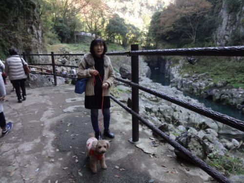 | トイも2kmほどの渓谷沿いの遊歩道を歩きました | 渓谷をバックに記念撮影 | |||||
