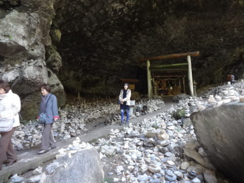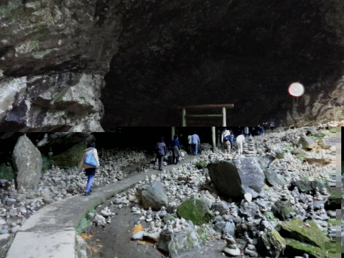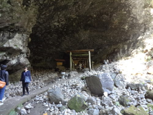 | 天照大御神様のお隠れになられた天岩戸と呼ばれる洞窟には駐車場から約10分歩かなければいけないがたくさんの人がお参りに来ていた。 | ||||||