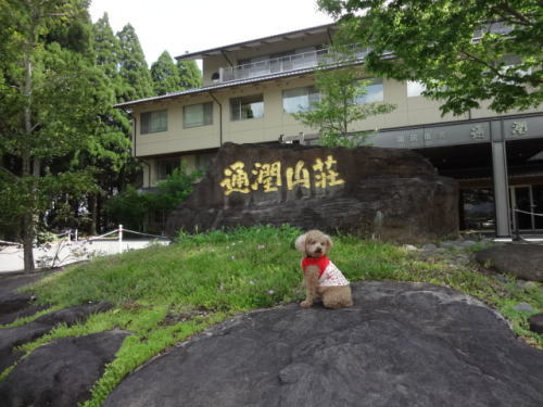 | 通潤橋から30分ほどにある道の駅清和文楽邑、トイを散歩させるもトイが暴走。 制止させようと声をかけるも店内に入り込む。散歩のときリードは必要である。 |