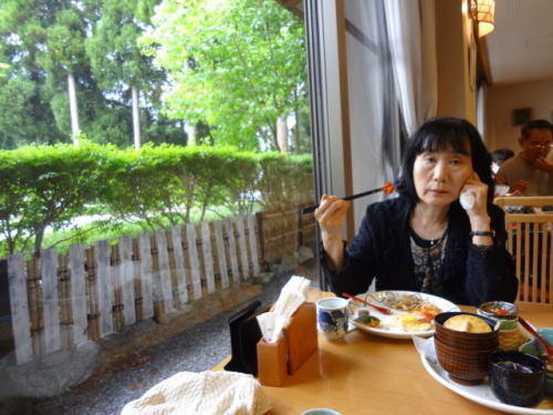 | 通潤山荘玄関前の石碑で記念撮影 | 通潤山荘のグルーポンを利用利用して入浴とランチバイキンク 料金は790円/1人゙ | |