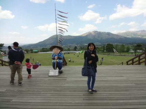 | 道の駅「あそ望の郷くぎの」は熊本市と高森町を結ぶ県道沿いにあり 阿蘇の大パノラマ「阿蘇五岳」が一望できる。この日は気温13℃と大変寒かった |