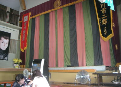 | 開演前のステージ。 | 9月1日〜10月30日の期間は市川市二郎一座の公演 公演を見た感想としては若干ストリーの内容が乏しかった。 |