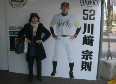 | 等身大パネルの傍で記念写真 | ホークスキャンプ場の生目の杜運動公園 |