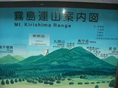 | 霧島連山案内図 | 2月19日Am9時頃、新燃岳は白煙等見られず。しかし、帰りの時間帯Pm2時ごろには白煙が上がっていました。 | |