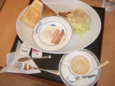 | 朝食と新燃岳の状況見学の為、霧島SAで休憩 | 霧島SAレストランではAm9時の時間であった為、朝食セットのみということでモーニング(700円)を頂きました。 | |