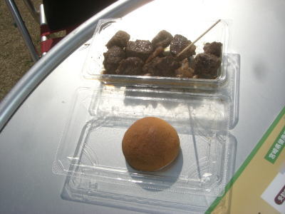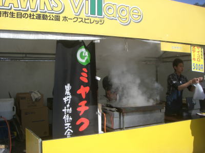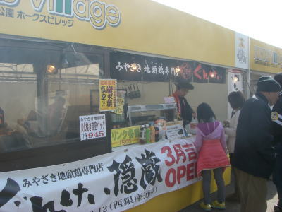 | キャンプ地名物の宮崎グルメを一堂に集めたような出店一帯 | 宮崎の地頭鶏で有名な”ぐんけい” | |