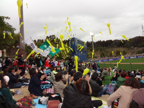 | ラッキーセブン応援真っ最中 | 応援歌も終わり風船を飛ばす | |