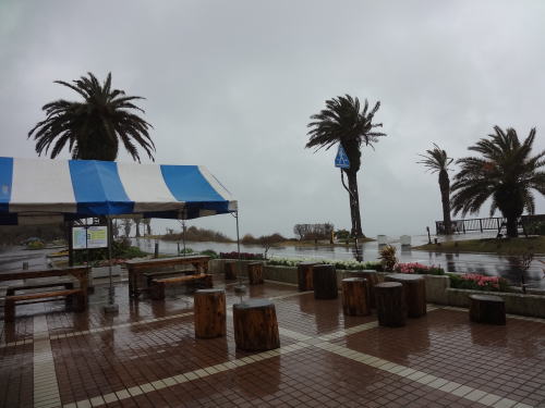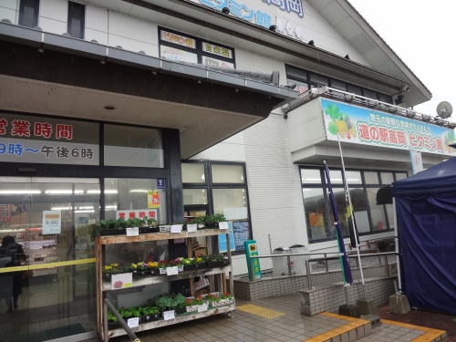 | 日南海岸通りにある道の駅フェニックス あいにくの雨で自慢の景色見られず | ホークスキャンプ近くにある”道の駅高岡”。ミカンなどが多く販売され別名ビタミン館ともいう | |
