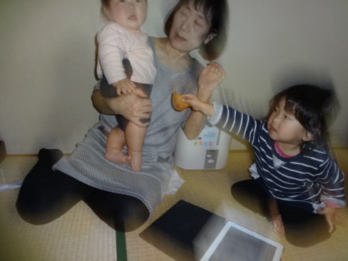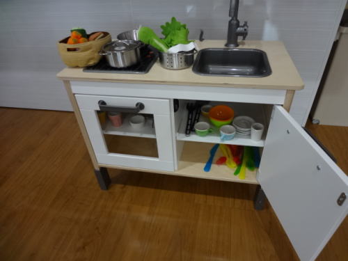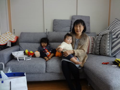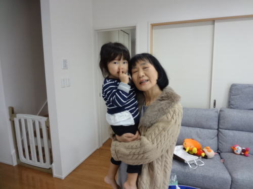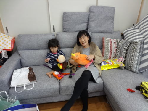 | イケアで購入したキッチンセットをお土産に持参しました。心花ちゃんは気に入った様子です | おばあちゃんと心花、愛花と一緒に | |