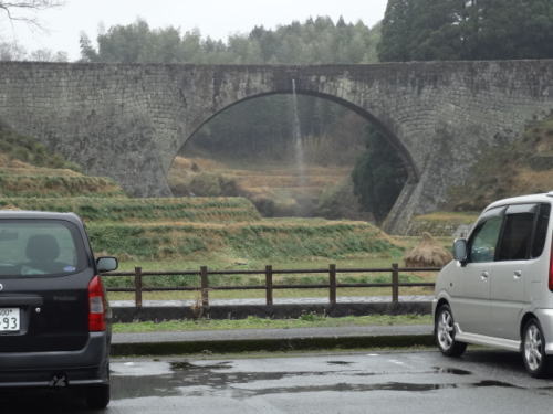 | 道の駅通潤橋の前で、小林市を出発したときは15℃であったが通潤橋では8℃となっていた | 熊本県上益城郡山都町にある通潤橋 | |