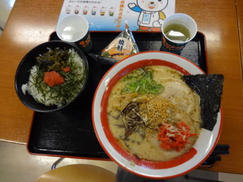 | 北熊本SA | 北熊本SAで遅めの昼食。熊本ラーメンと高菜ご飯。おまけに鮭ご飯も | |