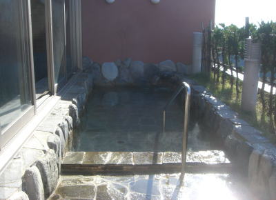 | モンゴル村温泉「草原の湯」 大人500円 泉質はナトリウム・カルシウムー塩化物泉 貸しきり状態で温泉が楽しめる | 「露店風呂」 温泉に訪れる人が多くないので、ゆっくり・のんびりと貸しきり状態で温泉を利用することができる |