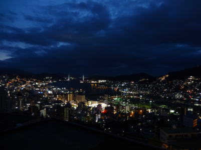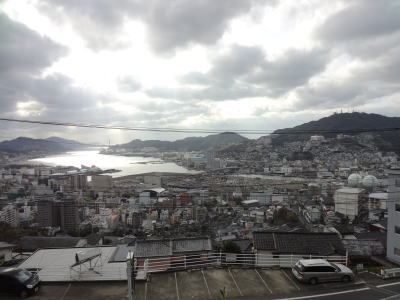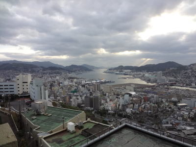 | ホテル日昇館玄関 | ホテル6階より長崎市街を望む |