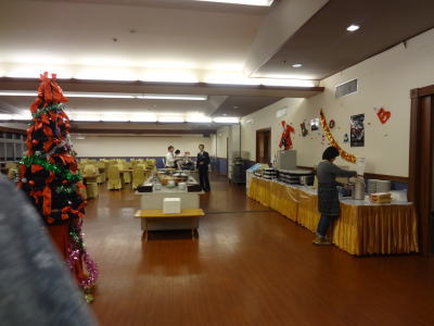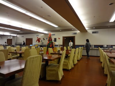 | 夕食会場、宿泊者は平日のためか少ない。 | ホテル2階のラウンジ |