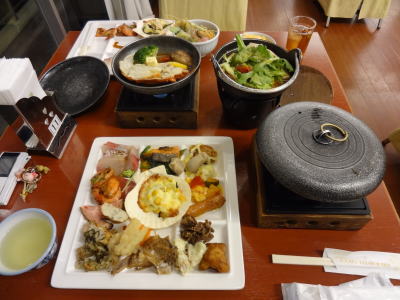 | 夕食バイキング会場 | バイキング料理 伊勢海老の鍋物あり |