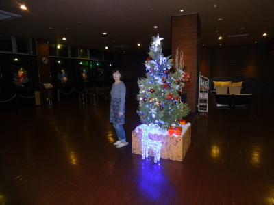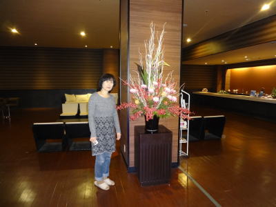 | クリスマスの飾り物の前で | 生け花と一緒に |