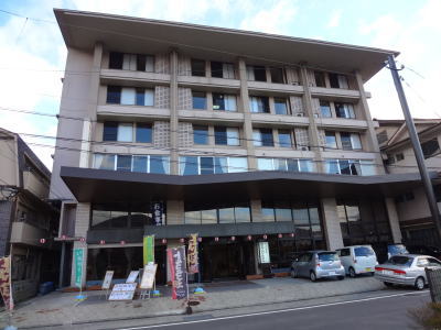 | みかどホテル入口 見事な加工木が並んでいる | みかどホテル玄関 |