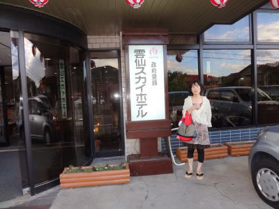 | 宿泊地の雲仙スカイホテル全景 | 雲仙スカイホテル玄関前にて |