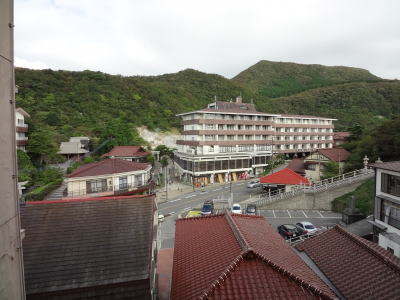| 部屋401号室から眺める 左前方に雲仙地獄が | 雲仙スカイホテル前の道路 |