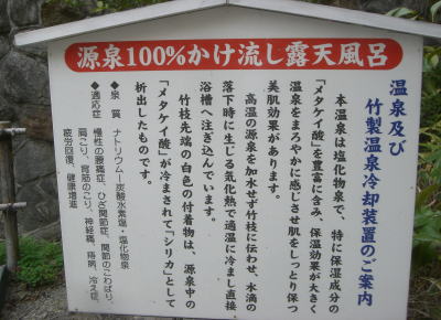 | 源泉は60℃以上あるけど笹竹を伝わすだけで適温になっている | 100%かけ流。、身体の芯まで温泉がしみこみ、湯上り後も温かく大満足 |