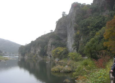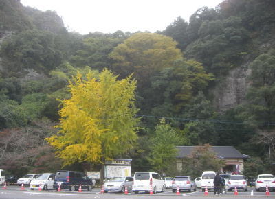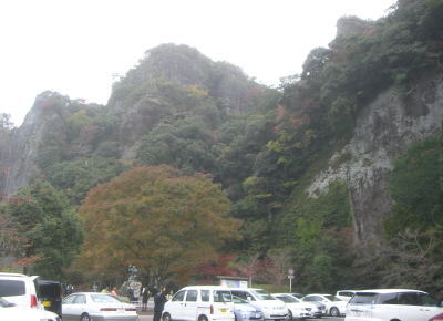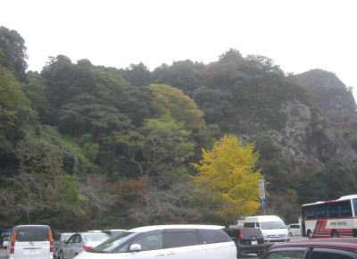| 青の洞門付近の紅葉 6年ぶりの秋の黄砂により少し霞んだ状態 | ||