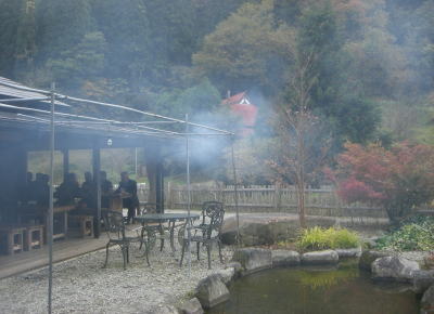 | とろろの湯中庭とお食事どころ”とろろ庵” 地鶏の炭火焼で煙が | とろろの湯温泉入り口 | |