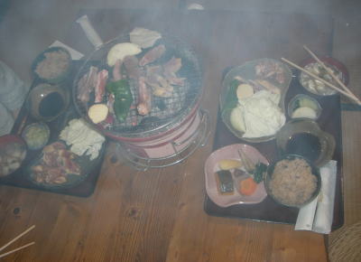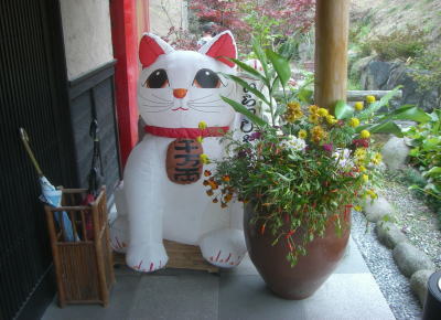 | 炭火焼で煙が充満 地鶏のためか肉が硬かった | お風呂入り口に招き猫が | |
