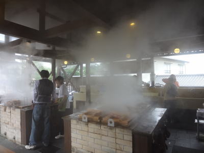 | 鉄輪温泉中心部にある地獄蒸し工房 | 地獄蒸しは自分たちで | |