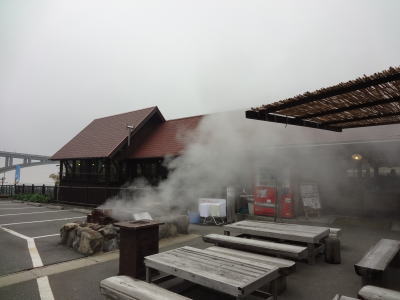 | 地獄蒸しプリン「明礬温泉 岡本屋売店」 | 明礬温泉中心部で湯の華を採取する室が立ち並んでいる | |