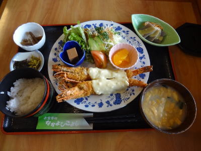 | 「道の駅」うきは | 「道の駅」うきはで昼食を 写真は海老天定食980円 | |