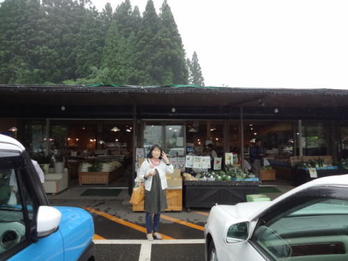 | 熊本県波野村の”道の駅なみの” | ”道の駅なみの”のバス停留場前で | |