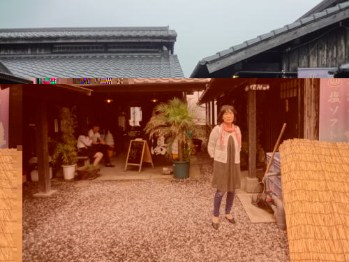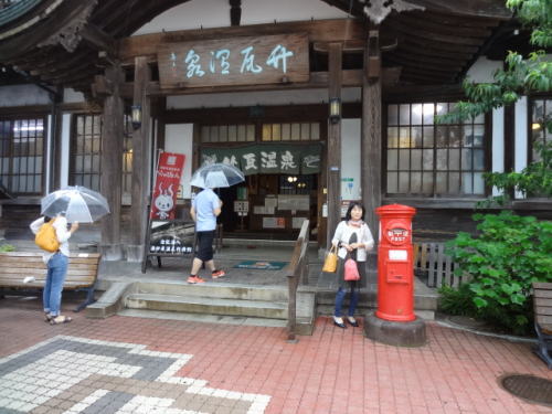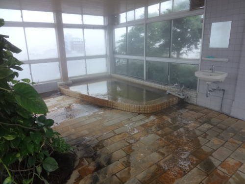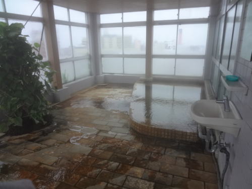 | 別府竹瓦温泉入り口にて 入浴料は100円、泉質は炭酸水素塩泉 | 竹瓦温泉フロアにて 湯の温度が少し高く女性には不向き化も | |