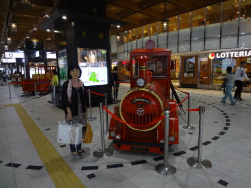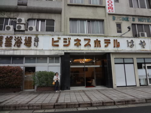 | はやしホテル前で ホテルには温泉もついており満足 | 別府駅構内で | |