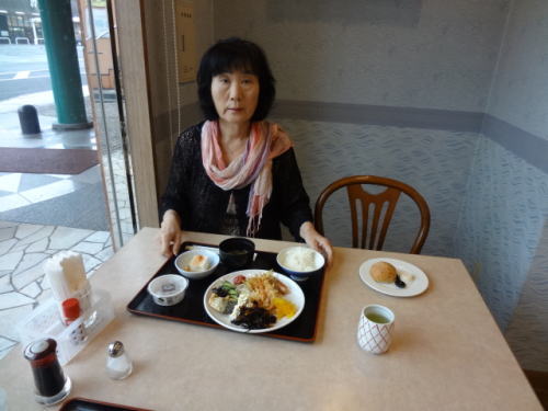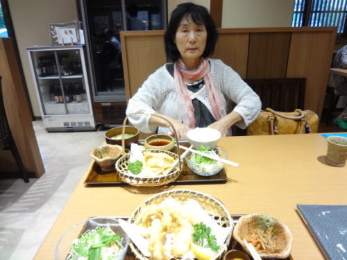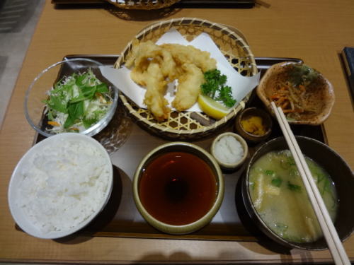 | 夕食は別府駅構内の豊後茶屋別府店で 注文はとり天定食860円、お得感あり | 2人ともとり天定食をいただきました | |