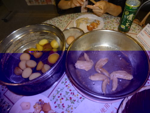 | 持ち込んだ食材は卵、椎茸、じゃがいも、手羽先、さつまいも | 地獄蒸し工房の飲泉 | |