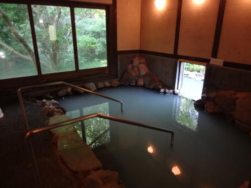 | さわやかハートピア明礬温泉 露天風呂付の泉質は明礬 | さわやかハートピア明礬温泉、泉質は明礬の内風呂 少し熱めであった | |