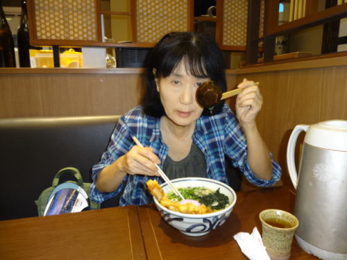 | 夕食は駅周縁を探したが思うような店が無く、前回と同じ別府駅構内の豊後茶屋で | 私はとり天定食(860円)、妻はとり天うどん(680円?)をいただきました | |
